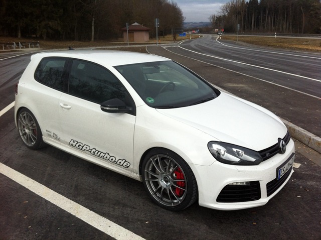 In der Mitte der Halle ein blauer Golf 6 R mit offener Motorhaube… Ich kurz geschaut; R36 Turbo prangt in großen Lettern auf dem Motor, im Innenraum eine 6 Gang Handschaltung. Das wäre nicht weiter verwunderlich. Bedenkt man aber, dass es sich bei dem Triebwerk um einen unaufgeladenen V6 aus dem Passat handelt, den es gar nicht im Golf gibt (aktuell ist im Golf R ein 2.0 Liter TFSI 4 Zylinder verbaut, statt dem Vorgänger 3.2 Liter V6). Darüber hinaus wird der Golf R mit DSG ausgeliefert. Handschaltung gibt es gar nicht mehr im R. Im Klartext: Hierbei handelt(e) es sich offenbar um eine sehr umfangreiche OP am offenen Autoherzen. Motorkomplettumbau nebst Turbolader und Umbau auf Handschaltung!!! Von Kleinkram, Abstimmung, Software und sonstigen Anpassungen will ich gar nicht erst anfangen. Leistung auf Porsche Turbo Niveau – nach oben noch Luft… Fragen? Kontaktbutton unter www.hgp-turbo.de :-)