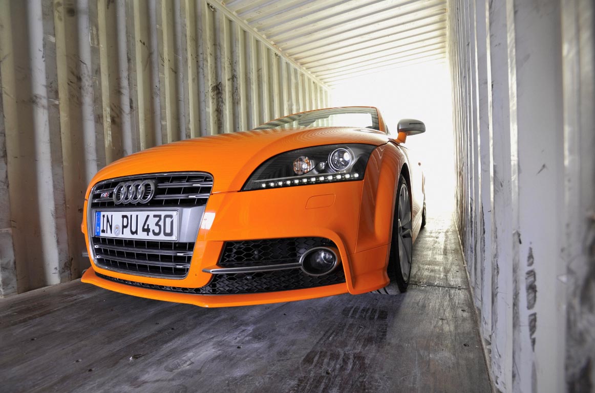 Der Zweisitzer ist zwar kein Neuling auf unseren Straßen, zählt aber auch noch lange nicht zum alten Eisen, soviel ist schon auf den ersten Blick klar: Seine sportlich eleganten Rundungen erstrecken sich vom dominanten Singleframegrill, über die ausgestellten Kotflügel bis zu den vier ovalen Endrohren. Dabei lassen die glutorange Farbe und die schicken serienmäßigen 18-Zoll-Felgen den TTS zur heißen Fata Morgana mutieren.