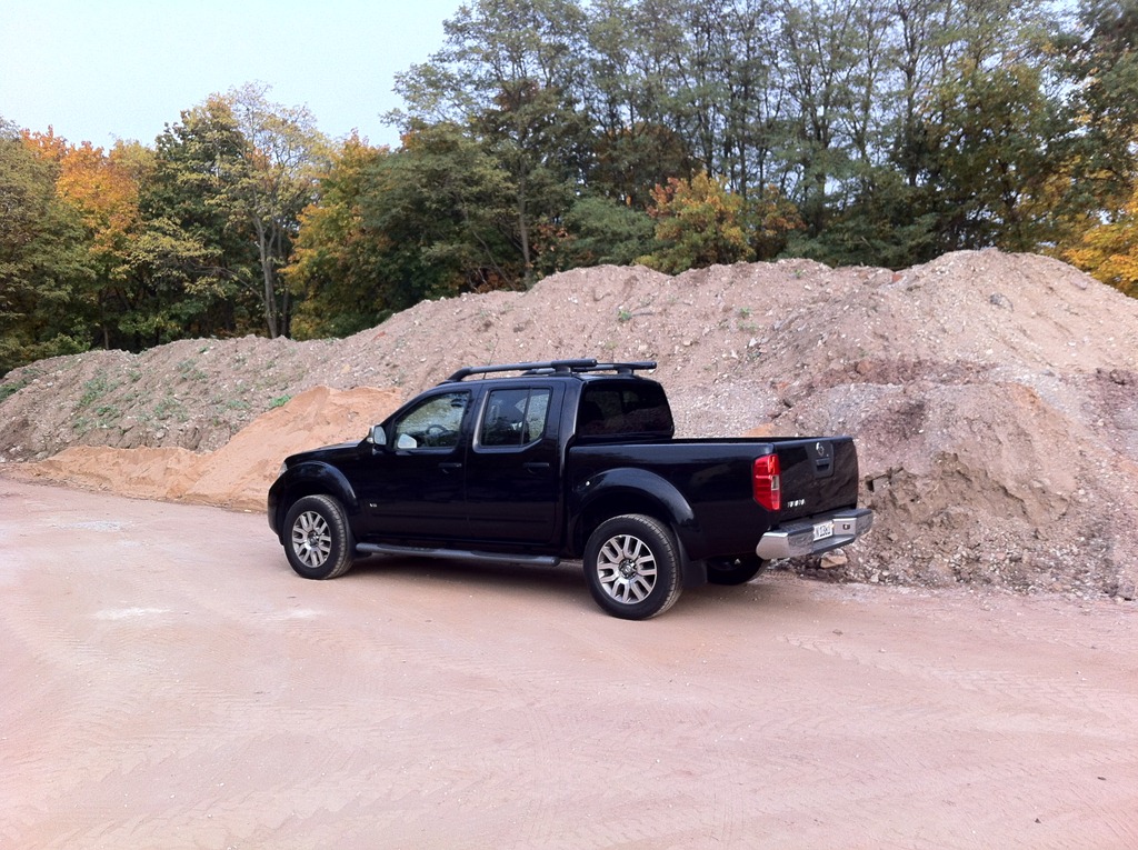Jetzt kann ich mich endlich mal um die technischen Daten kümmern und mich im Auto etwas umsehen. Dass er einen Diesel hat und Automatik habe ich beim Ausparken schon festgestellt – aber geht da auch was? 170 kW (231 PS) und 550 Nm hat der 3-Liter-V6-Dieselmotor, 195 km/h Topspeed. Nicht schlecht! Dafür aber auch rund 2,2 Tonnen Gewicht. Der Innenraum ist großzügig geschnitten. Die Kunststoff-Materialien lassen haptisch allerdings etwas zu wünschen übrig und das Leder wirkt ein wenig künstlich. Gerade gegenüber meinem Audi fällt der Unterschied auf. Aber andererseits bekommt man hier einen 5,30 Meter langen Allradler für rund 46.500 Euro. Viel Auto für das Geld. Daneben gibt es noch den Pathfinder. Quasi der Navara als klassischer Geländewagen ohne Pritsche, dafür mit Kofferraum.