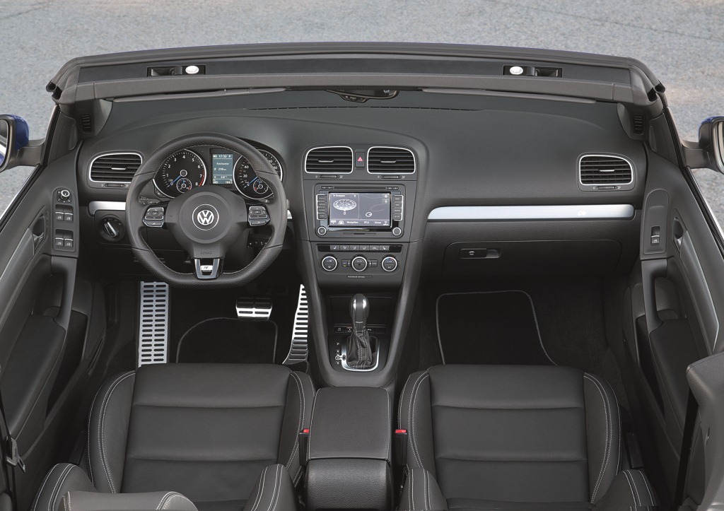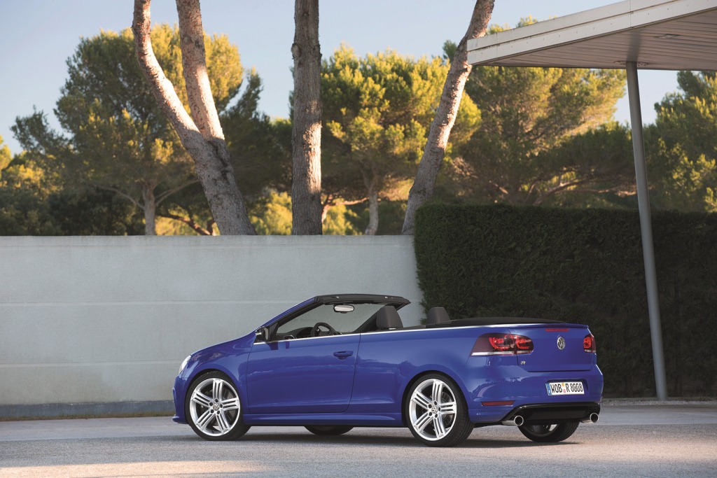 Exklusive Serienausstattung. Als neues Topmodell unter den Golf Cabriolets wird der Sportwagen – über generell in diesem Modell serienmäßige Details wie den automatischen Überrollschutz hinaus – mit Features wie Bi-Xenonscheinwerfern, LED-Tagfahrlicht, LED-Rückleuchten, 18-Zoll-Leichtmetallfelgen, Sportsitzen (vorn), einer Lederausstattung, Klimaautomatik, Audioanlage mit CD-Player, Sportfahrwerk und Stoßfänger in einer eigenständigen Motorsport-Optik antreten. Das allerdings auch für dieses Golf Cabriolet wichtigste Ausstattungsdetail ist das bis in höchste Geschwindigkeitsregionen hinein leise Verdeck. Es öffnet serienmäßig elektrohydraulisch; und zwar in 9,0 Sekunden. Das außergewöhnlich sportliche und gut ausgestattete Golf R Cabriolet wird auf seinem Heimatmarkt Deutschland 43.325 Euro kosten.