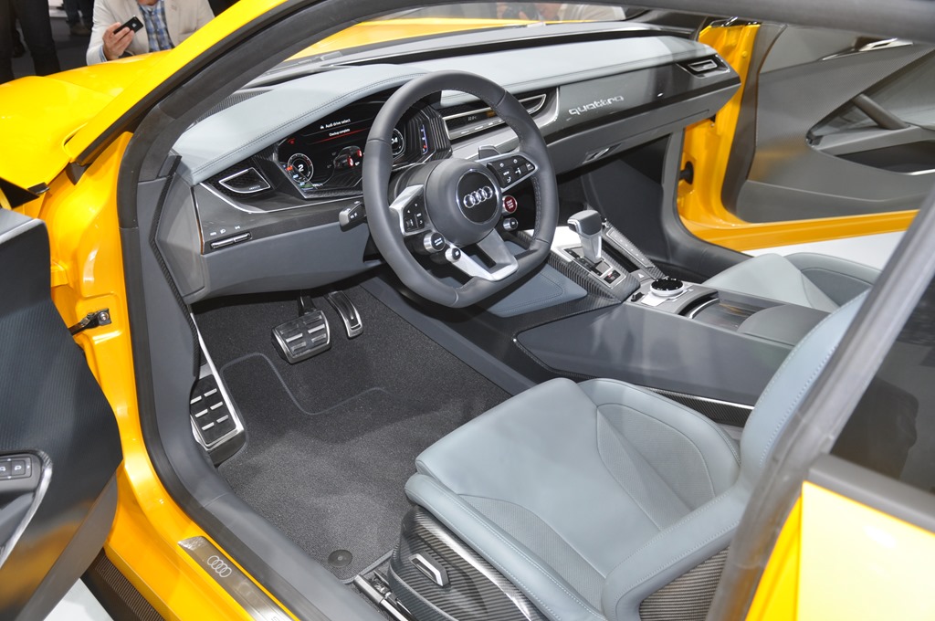 Ein paar Details dürfen natürlich nicht fehlen: Angetrieben von einem 4.0 Liter V8-Biturbo, ergänzt um einen Elektromotor mit ca. 150 PS werden in Summe rund 700 PS an den quattro-Antrieb geschickt. Die elektrische Energie im flüssigkeitsgekühlten Lithium-Ionen-Akku im Heck reicht nach Aussage von Ulrich Hackenberg (dem neuen Audi Entwicklungschef) für 50 Kilometer spritfreies Fahren. Die Studie ist eine Hommage – nicht nur namentlich, sondern auch optisch – an den legendären Sport quattro aus den 80´er Jahren. Mit knapp 200.000 DM war dieser das teuerste deutsche Serienauto zu der Zeit. Beim “Neuen” werden die Preise auf rund mindestens den Betrag in € geschätzt, eher mehr. Eine Kleinserie ist für 2016 angedacht und somit sollte man tunlichst jetzt schon anfangen das Sparschwein zu mästen.