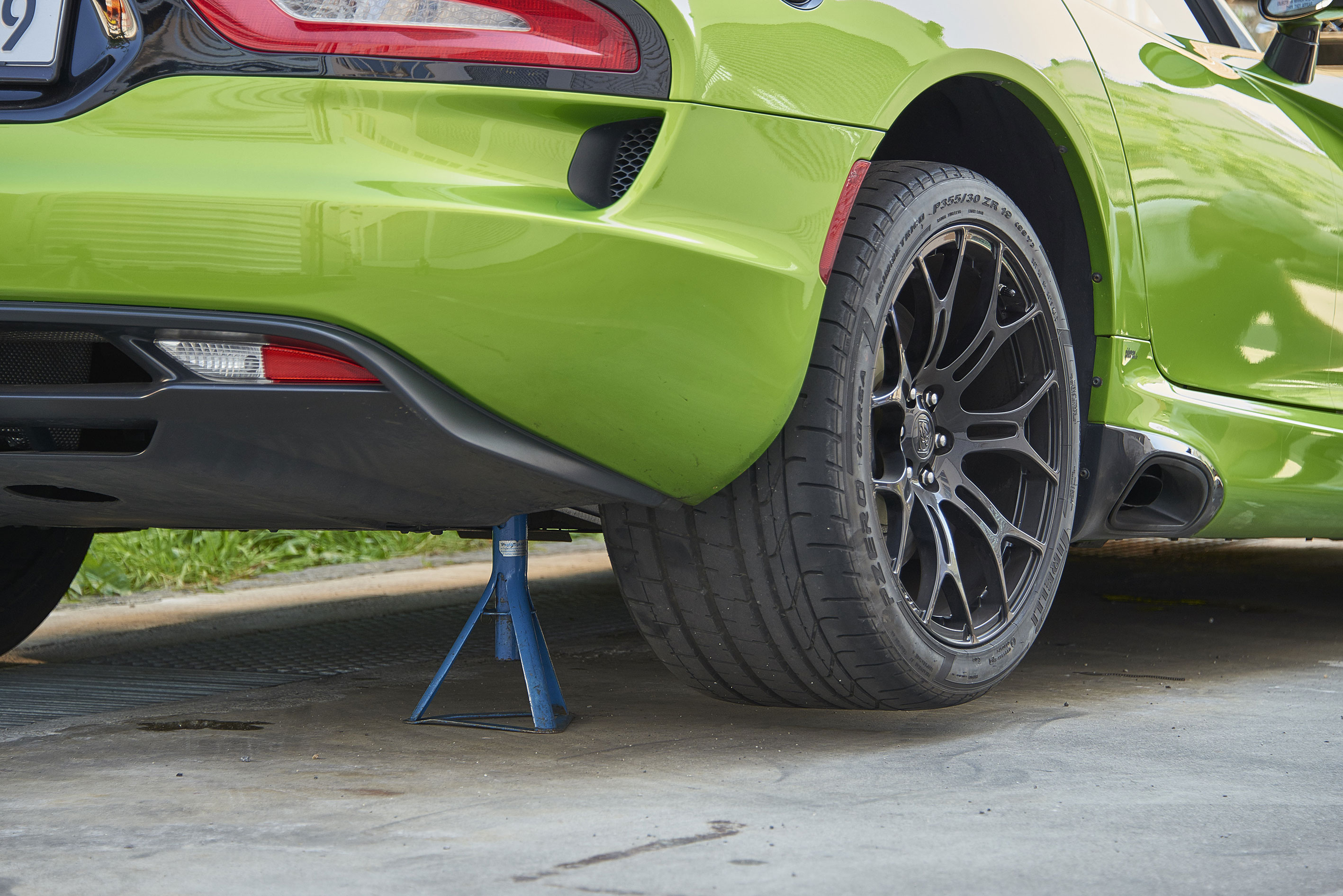 Geknickt wie zwei vermeintlich böse Schuljungen vor dem Direktor stehend, sind wir vor den Chef getreten und haben Beichte abgelegt – wohlwissend, was ein Pirelli P Zero Corsa in der Größe 355/ 30 ZR 19 kostet. Es sind über 600 € – pro Reifen! Doch der Chef nahm das mit einer überaus beängstigen Gelassenheit zur Kenntnis und ließ sofort prüfen, ob vielleicht Ersatz auf Lager war. „Wo gehobelt wird, da fallen eben Späne“ grinste er nur. Hausverbot haben wir natürlich keines bekommen und „Nachsitzen“ mussten wir ebenfalls nicht. Leider war jedoch kein Ersatzreifen verfügbar und an einem Freitag-Nachmittag auch nicht so einfach auf die Schnelle aufzutreiben. Die Viper wurde dann kurzfristig aufgebockt, um die Felge zu schonen. Und wir mussten eben mit dem Leben, was wir bis dahin im Kasten hatten. Daher ist diese Folge „nur“ eine (Kurz-) Fahrspass 4 ½ die aber dennoch riesen Spass gemacht hat und irgendwie besonders war. Wir haben uns daher noch ein wenig bei GeigerCars.de umgesehen und gefilmt. Karl Geiger wäre übrigens nicht Karl Geiger, würde er uns nicht direkt als „Ersatz“ für das nächste Mal eine Corvette Z06 mit fettem V8 angeboten haben. Deal accepted!